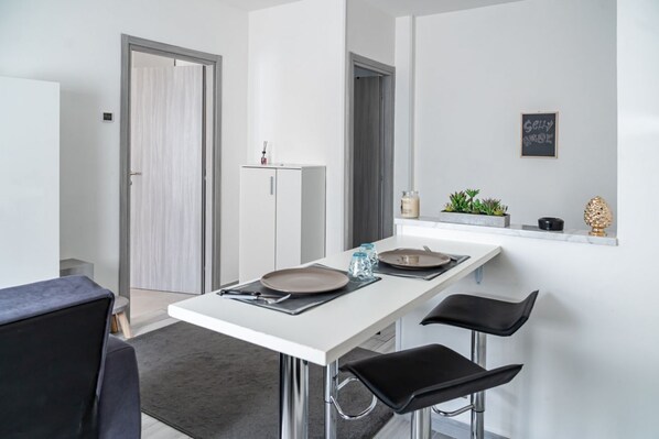 Las habitaciones de este apartamento disponen de secador de pelo y tabla de planchar con plancha. La cocina está dotada de frigorífico y placa de cocina. Los baños están equipados con ducha y bidé.