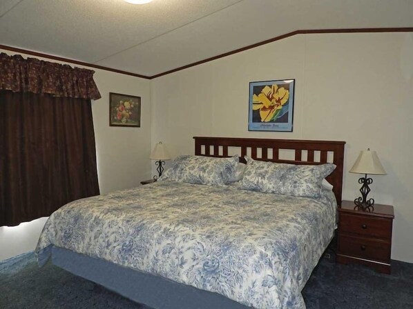 Hay dos habitaciones. El maestro tiene una cama king-size y un televisor de pantalla plana con DirecTV. El dormitorio de invitados tiene una cama de matrimonio. También hay dos baños completos.