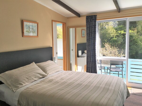 The Guest Wing’s north facing aspect captures the sun so is warm but for added comfort, it is double-glazed and has a heat pump. Despite Anakiwa 401 being one of the oldest homes in the bay, built in 1926, we've lovingly renovated it to retain its historic charm. With its homely yet spacious atmosphere, it comfortably accommodates four people and offers a relaxed setting for your next Marlborough Sounds holiday adventure.