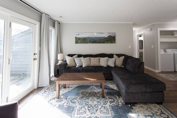 Come stay in our quiet mountain retreat! This upstairs condo has everything you could need to enjoy a stay in beautiful and exciting Asheville, NC. Our condo has everything you could need during your stay, including 50" TVs in the living room/bedrooms, a fully-stocked kitchen, charger stations, blackout curtains, sound machines, smart locks, books/games for the whole family to enjoy. Artfully decorated to maximize the space our condo is ready for you!