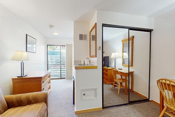 Second-floor room on Main St - pool & hot tub - walk to lifts, dog-friendly