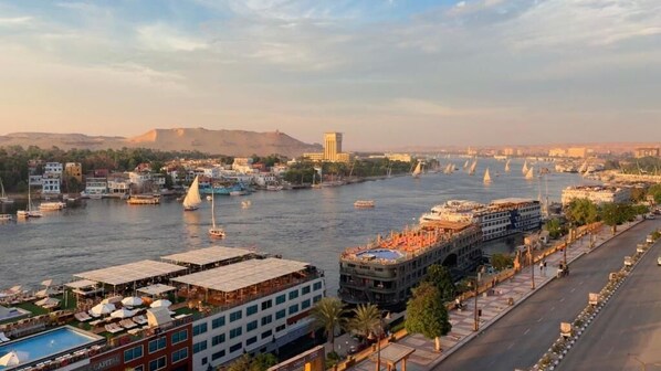 Hotel a orillas del río en Asuán con aparcamiento gratuito y fácil acceso a un centro comercial