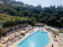 Don't know how to start. Incredible hotel close to the beach. However, it is far from everywhere, so forget to think about going for a walk. The pools are amazing, but close at 19:00, which for me is the best time. Drinks are very expensive (6€ for a small beer, 2€ for small bottle of water and 13€ for a whisky with coke, fine for many places, but maybe too much considering you are in Greece abd you have nowhere else to buy anything). The staff is very nice and helfull, but you must pay just after order, even if there are only 3-4 clients consuming.