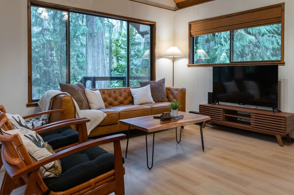 Fully remodeled in 2023, our cozy yet modern cabin is an ideal getaway for vacations or remote work.
