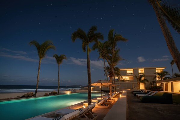 Esta propiedad cuenta con una amplia recámara con baño completo, diseñada para brindar descanso y privacidad. Su terraza privada ofrece sala exterior, comedor al aire libre y una piscina tipo plunge pool con vista al océano. La sala interior, equipada con mobiliario de diseño, es ideal para relajarse con aire acondicionado o disfrutar de la brisa marina. La cocina y el comedor, completamente equipados, están integrados en un espacio abierto que invita a compartir momentos memorables, mientras que el área de lavandería y servicio se mantiene discreta y funcional. El acceso principal conecta de manera fluida con las áreas comunes, creando una transición natural entre interior y exterior, y cada detalle ha sido pensado para ofrecer una experiencia de lujo sin complicaciones. Entre las amenidades del desarrollo se incluyen la alberca principal frente al mar, alberca infantil, servicio de concierge, seguridad 24/7 y estacionamiento.