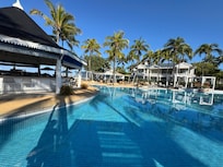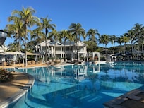 Complejo de primera clase en la playa, con una piscina al aire libre