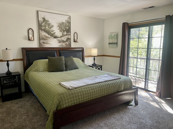 Bedroom 3: Queen Bed with outdoor patio access.