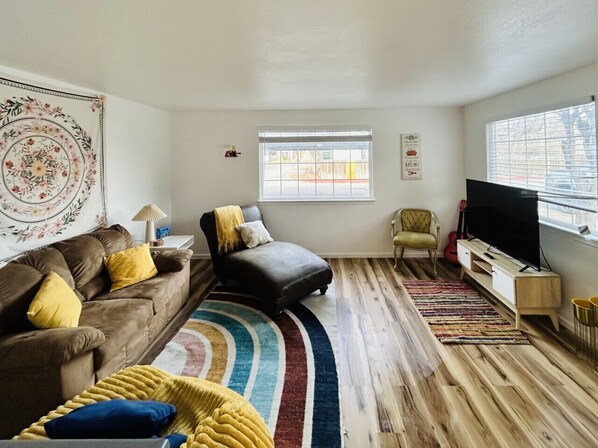 Step into the quirky charm of Friends right here in Boise! This Phoebe-inspired apartment is a whimsical and stylish two-bedroom oasis with everything you need to feel at home — whether you`re here for a quick getaway, a girls` weekend, or a cozy family retreat.