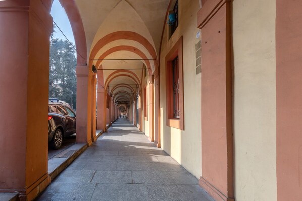 The apartment is located in a historic building in Porta Saragozza, a prestigious area of Bologna, at the foot of the hills and at the beginning of the monumental portico of San Luca, the longest in the world, which reaches the Basilica on the Coll