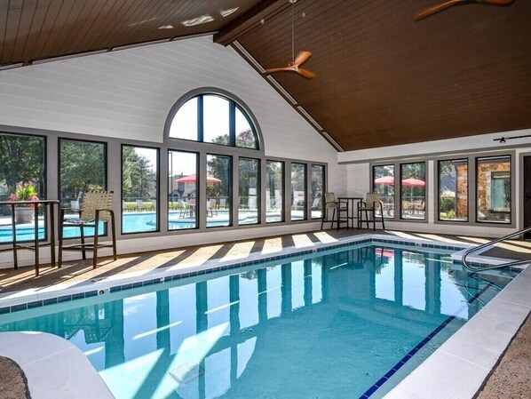 Una piscina cubierta, una piscina al aire libre