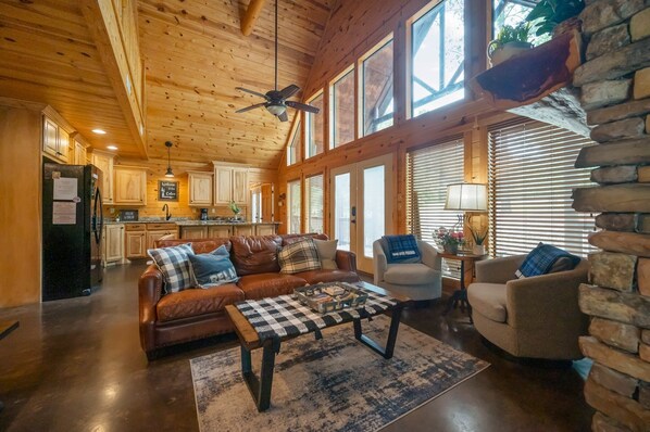 Después de un día completo experimentando todas las aventuras de Beavers Bend, Moon Over Paradise cuenta con una gran terraza cubierta con chimenea de leña, cenas al aire libre para 12 invitados y una bañera de hidromasaje perfecta para una noche relajante. Las actividades al aire libre adicionales incluyen una cancha de pickleball / tennis / vollyball (traiga sus propias raquetas), herraduras y una hoguera con 4 sillas adirondack para que los huéspedes disfruten de malvaviscos asados. También hay un área de juegos y una cancha de baloncesto para que los niños disfruten.