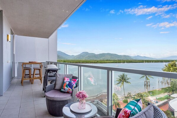 Enjoy views of the Cairns Marina! Our stunning 2-bedroom apartment offers close proximity to restaurants, tour departures and the heart of Cairns.