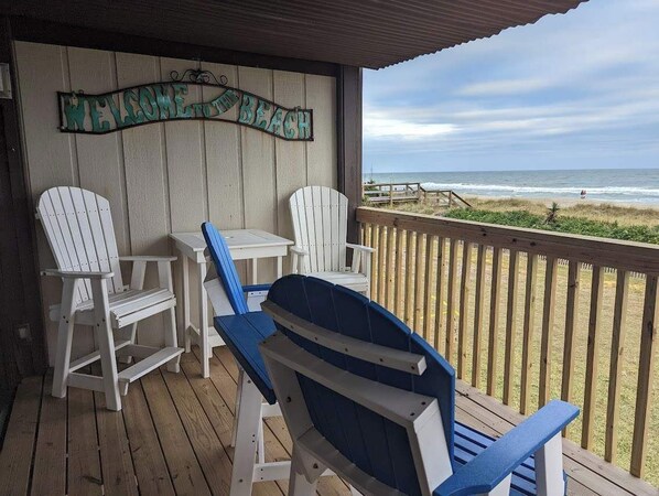 Perfect condo for your beach vacation! Beachfront with the most amazing view. Fully stocked kitchen and all the basic necessities provided to make your vacation perfect. Modern Beach decor that makes you feel like you are in a vacation resort! When you aren't at the beach you can enjoy the community pool to cool off. Parking for two cars directly under the unit!