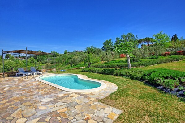 Schöne Aussicht in die Hügel, auch auf die nach Florenz herankommenden Flieger. Kleines Haus und Pool wie beschrieben, sehr schöne große überdachte Terrasse. Leider wurde eingebrochen während unseres Aufenthalts und Ausweise, Bargeld, Karten, Schmuck, private Schlüssel etc. und damit unsere Identität gestohlen. Deshalb sahen wir uns natürlich gezwungen, dieses Haus zu verlassen und uns für die zweite Woche eine neue Unterkunft zu suchen. Für uns war dieses Haus in keinster Weise mehr sicher. Bedauerlicherweise haben uns die Vermieter trotz mehrfacher Nachfrage kein Entgegenkommen gezeigt und keinerlei Erstattung angeboten. Sehr bedauerlich.