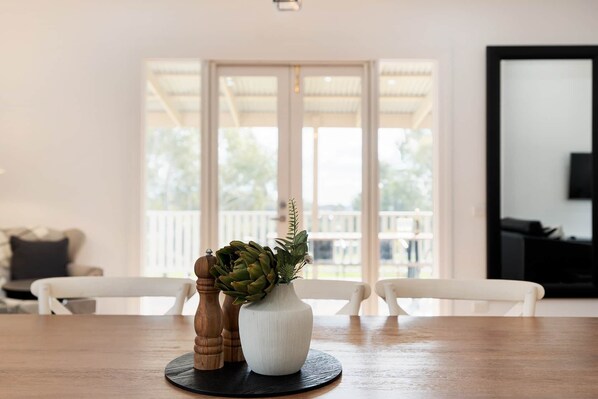 ✪ Outdoor deck with dining table & BBQ ✪ Firepit lounge with stunning sunset views over the backyard ✪ Dedicated workspaces in both bedrooms ✪ Fully equipped kitchen with modern appliances ✪ Reverse cycle ducted heating & cooling throughout