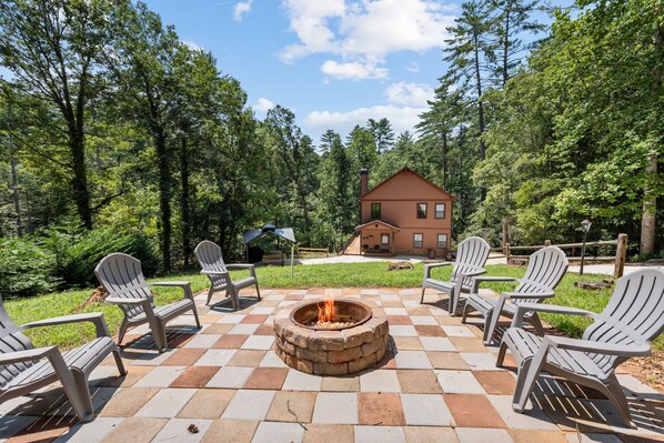 Imagínese asar a la parrilla o relajarse en una gran terraza enclavada en el bosque mientras se enumera en el riachuelo de truchas debajo. O, si eres aventurero, prueba a buscar oro en Trout Stream. Después de un largo día explorando las montañas del norte de Georgia, relájese en la bañera de hidromasaje para 6 personas en la cubierta de abajo. Mientras tanto, los niños pueden pasar el rato en el nivel inferior jugando al billar, futbolín o X-box. Con cada habitación con su propio televisor y reproductor de video más uno en las salas de estar del primer y segundo piso, hay 6 televisores para que todos puedan ver algo diferente. Ubicado en el centro de la sala principal, hay una computadora con conexión a Internet DSL de alta velocidad y un enrutador inalámbrico para que pueda llevar su computadora portátil para mantenerse en contacto. Y, con una cocina totalmente equipada y configuraciones para la familia más numerosa, puede crear sus platos favoritos.