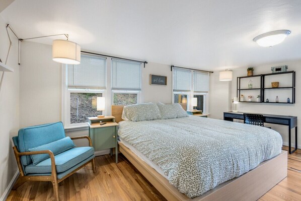 Built in 1903, this home has since undergone a serious remodel. The fully-stocked kitchen and 4-piece bathroom were updated in 2018, but that was only the smallest hint of the extensive remodel that was to come five years later. In the summer of 2023, we installed central AC, painted inside and out, expanded off-street parking, and tore out all carpets to refinish the original hardwood flooring. Nearly all furniture and furnishings are brand new, and all the linens certainly are!