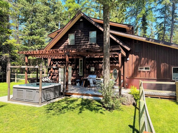 You'll be staying in a recently constructed and renovated, main level 3 bedroom 2 bath decorated with a rustic and contemporary vibe. Ample windows give to a light and airy feeling while you're indoors. The private deck and oversized hot tub offers a relaxing and peaceful recovery from playing hard in the mountains and on the lakes and rivers, and a fully fenced yard area provides a safe place for the pooch to play too.