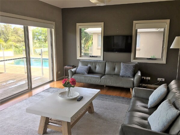 Mystique Country House, en Coolangatta, Nueva Gales del Sur, es una gran casa orientada hacia el norte, ubicada en casi 2 acres de tierra rural de calidad en el corazón de la región vinícola de Shoalhaven. Esta hermosa casa de diseño arquitectónico, construida en 2007, es moderna y tiene características de diseño únicas. Se construye todo en un nivel. Está rodeado por un lago y tiene el magnífico telón de fondo del monte Coolangatta. Todas las habitaciones de la casa tienen ventanas y / o puertas correderas con vistas a paisajes campestres de lagos, montañas o tierras rurales y árboles. La propiedad tiene un flujo fácil entre la vida interior y exterior y admite una vida cómoda durante todo el año. La presencia atmosférica del lago y la montaña agrega mucha intriga y misterio a su experiencia de alojarse en la propiedad. La casa es muy privada y bien apartada del camino. Mystique se encuentra muy cerca de la finca Coolangatta. Conduce por un encantador camino rural al lado de los viñedos en el acceso a la propiedad. También se encuentra a pocos minutos de la playa y el parque nacional de Seven Mile y del río Shoalhaven. Esta área es muy central para muchas ciudades y áreas rurales y costeras en el área de Shoalhaven. Adecuado para la familia o amigos, reuniones y alojamiento. Estrictamente no hacemos bodas o eventos, sin excepciones.