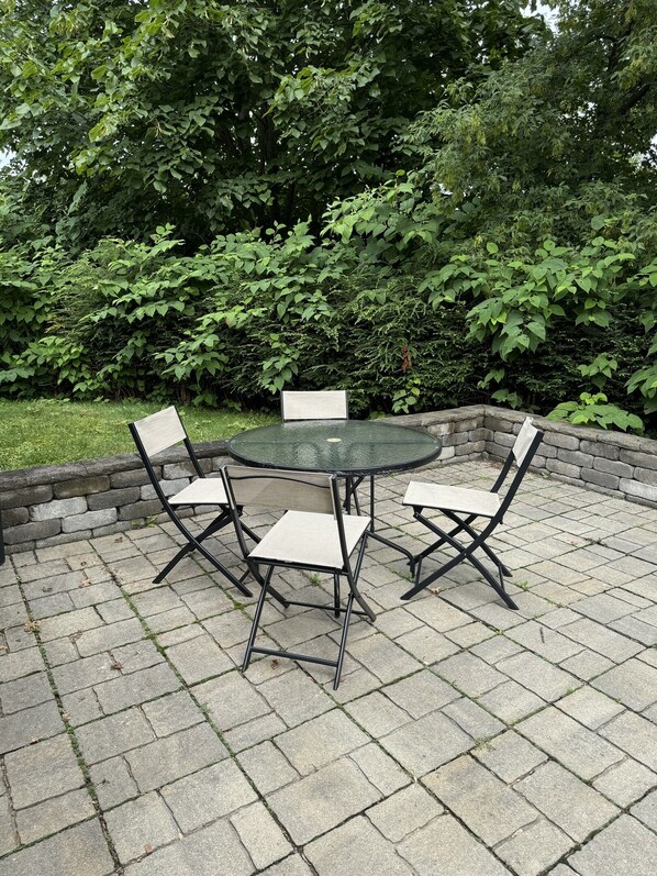 A lovely outside area is all yours for alfresco dining! The location is amazing, close to lots of shops, restaurants and a grocery store.
