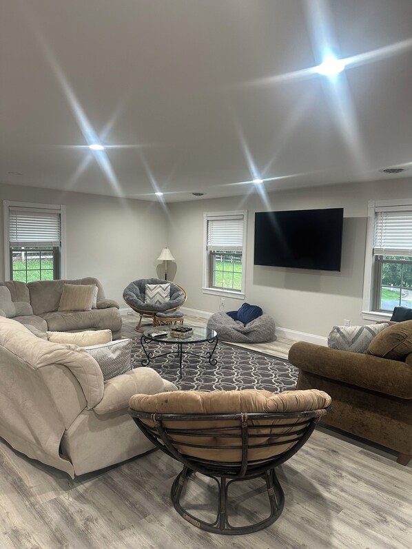We will provide 3 air mattresses for the living room that will complement the large L shaped couch and the futon chair. This will allow you to sleep 5-6 kids comfortably in the living room.