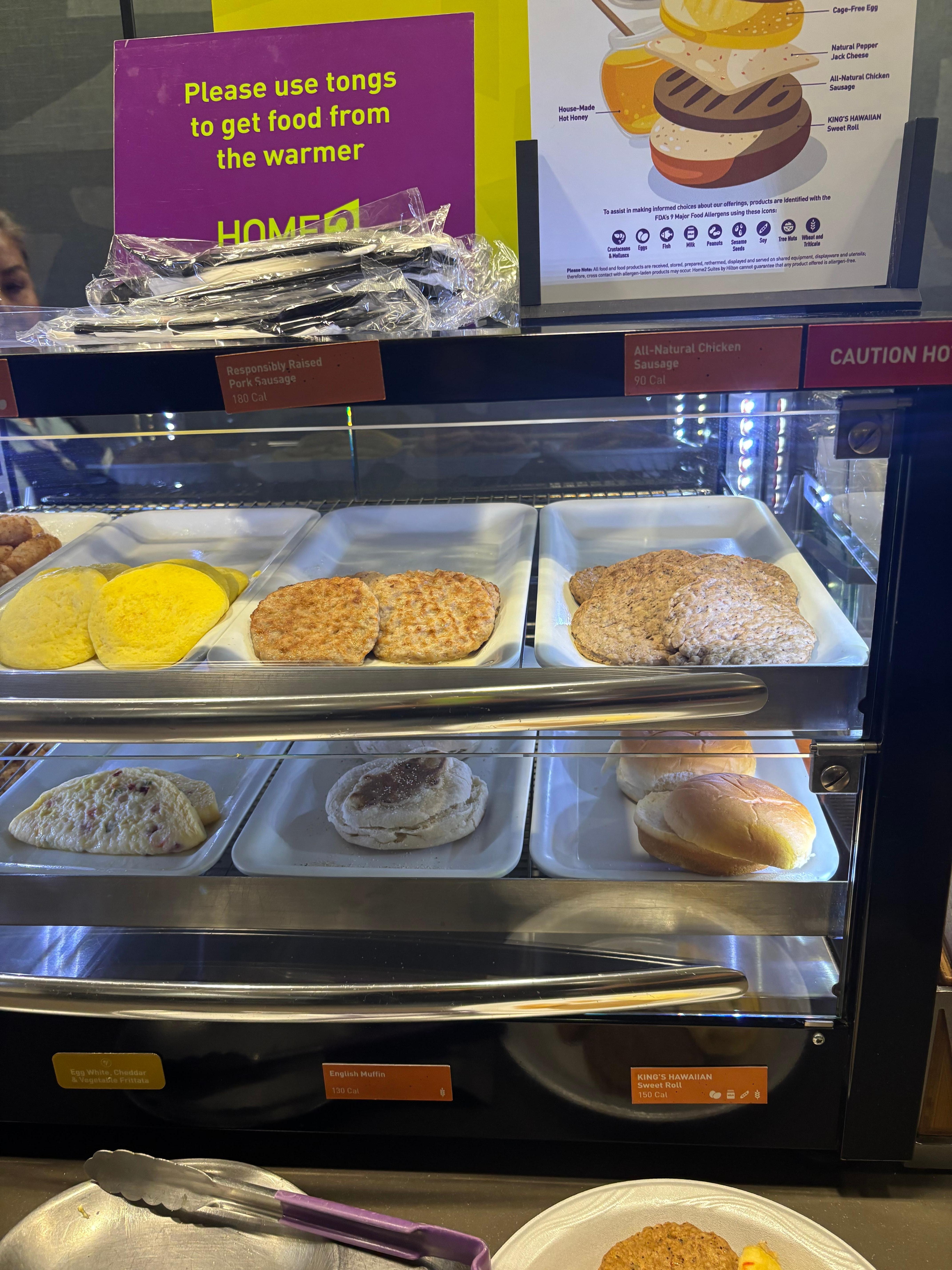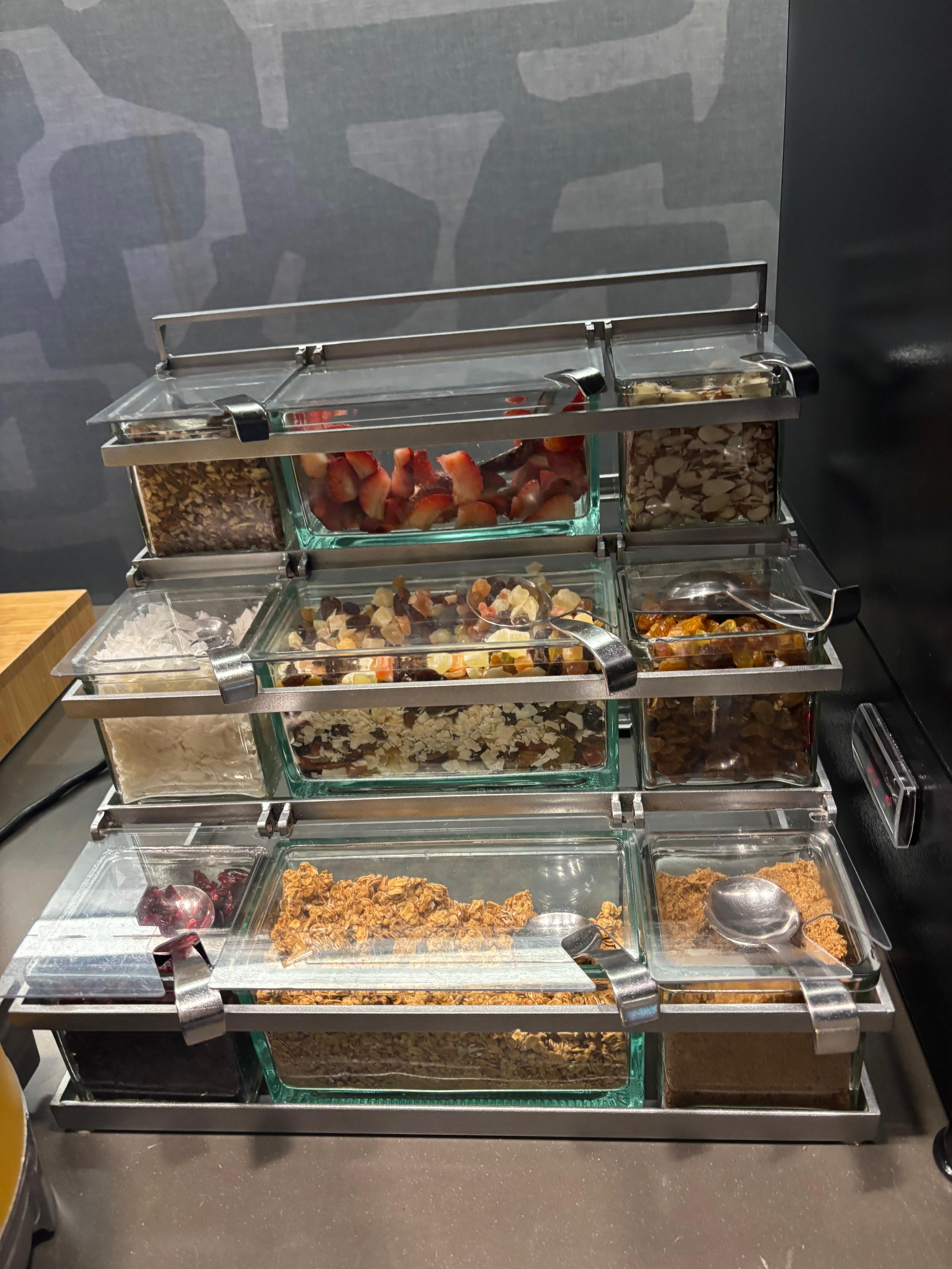 Breakfast was excellent and well-stocked, with different main choices each day (such as hot proteins and potato items) and "staple" items every day, such as waffles with the waffle maker, pastries, fresh fruit, and cereals.