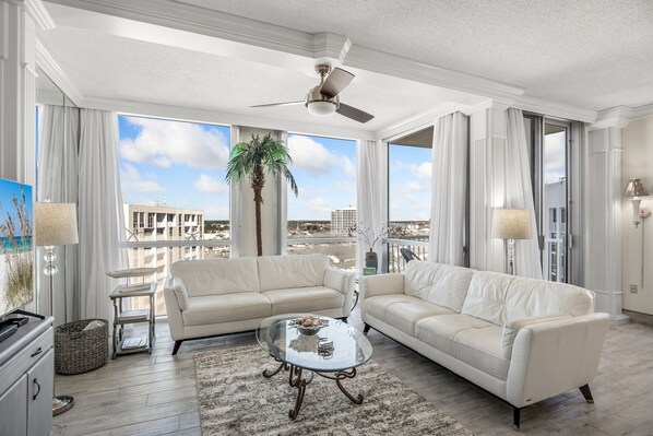 Sitting Directly on the World-Famous White Sandy Beach of DESTIN and just FEET from the WATER is this LUXURIOUS Spacious 1800 Square-Foot, Non-Smoking condo. Located on the 12 th (Top) floor, you have good VIEWS of the WATER, BEACH and DESTIN......You Are Staying in only 1 of 5 Penthouse units that are on the Top (12th) Floor- A Luxurious Penthouse with 9.5 foot Tall ceilings. The lower units have 8 foot ceilings.