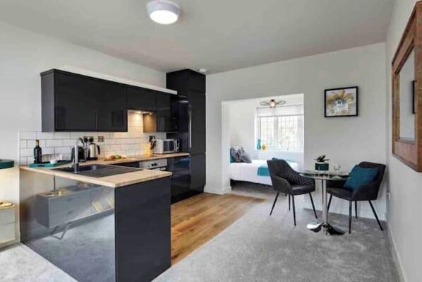 Stylish open-plan one bed serviced apartment
