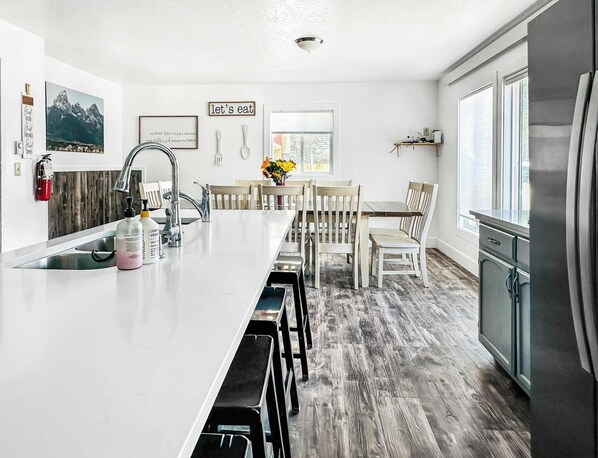 Our newly renovated 8-bedroom, 4-bath home in Driggs, Idaho, is designed for comfort, convenience, and adventure—all at a budget-friendly rate. Perfect for large families and groups, this spacious home provides the ideal retreat after a day exploring Teton Valley, Grand Targhee, and beyond.