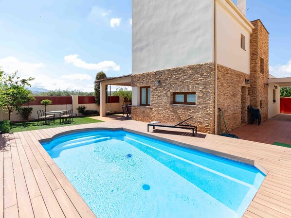Casa moderna con piscina, jardín, vistas a la montaña y barbacoa