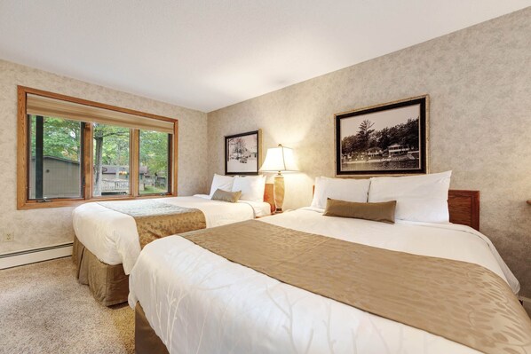 Experience the year-round wonder of the Eagle River Chain of 28 Lakes at this motel-style room in the historic Chanticleer Inn, a lakefront retreat that makes a wonderful home base for your explorations of Wisconsin's Northwoods. Built in 1922 and lovingly updated since then, this property offers a lovely lake view from your room, access to the resort's private beach on Dollar Lake, as well as other shared facilities that include a dock, a tennis court, a pickleball court, a basketball court, a playground, snowmobile trails, on-site boat rentals, and a beer garden/grill and full bar Memorial Day to Labor Day weather permitting.