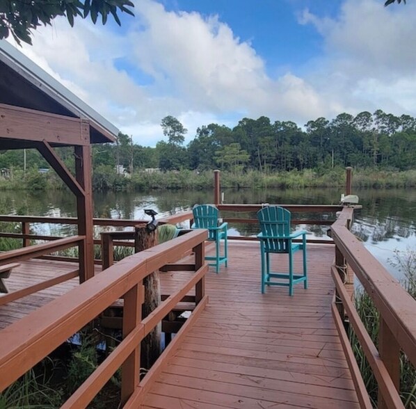 2-BR Getaway w/ HUGE screened porch, Golf Cart, Pool, & Boat Ramp near Wolf Bay