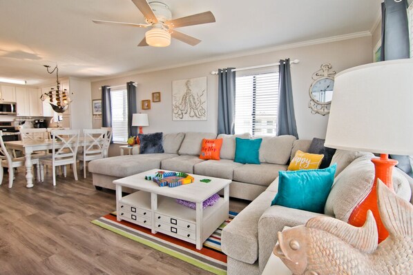 Enjoy views from the Covered Deck with Furniture located off the Living Area. Color Cable TV and DVD Player in the Living Area. Central HVAC; In-Unit Washer/Dryer. Dining Area. Kitchen has Refrigerator, Stove/Oven, Garbage Disposal, Keurig Coffee Maker, Microwave, and Dishwasher. Shared Half Bath.