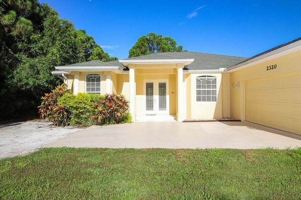 The house is located at the end of an unpaved road sitting on a half acre of overgrown tropical underbrush. It’s location is a short ride from the beach but not at the beach. It’s better than spending weeks crammed into a hotel room but as far as a VRBO home it has been neglected. When we first arrived, the garage was scattered with boxes and packaging from house hold items and work that was recently done to this house or any one of the other houses managed by the property company. The Welcome book was obviously not unique to this house as it warned of not allowing topless bathing and how to use the garbage disposal. Neither of which were happening here. Necessary information like trash removal or laundering instructions were omitted. The carpets are likely original from when the house was built and smell like it. All of the smoke extinguishers were missing batteries. The ceiling fans were rusted and covered in black mold. There are no spices or common cooking items in the house. No paper towels, dish detergent or toilet paper provided. There is a clutter of culinary oddities and dull knives in the kitchen. The stove is worn and scorched but that matched the condition of the pots that are scratched and worn. The bedrooms are decently appointed and decorated in a cute dated kind of way. The washer and dryer were older then the house and screamed the entire time and barely have enough room to wash a few garments at a time. Overall it’s dated, dirty, and nothing special. It’s a solid 3 out of 5.