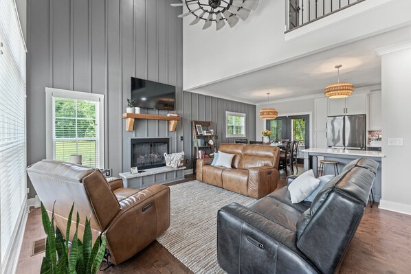 Inside, our home offers a warm and inviting atmosphere. Each room is tastefully furnished, providing a comfortable space to rest and rejuvenate after a day of lakeside fun. Our living area is cozy, complete with a fireplace for those moments when you want to curl up with a good book or dive into deep conversations. Our fully-equipped kitchen features top-of-the-line appliances, making meal preparation effortless.