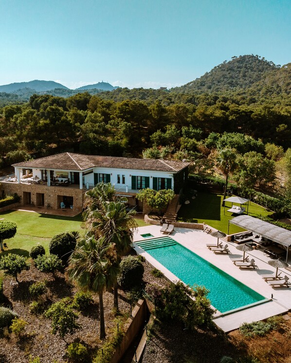 the pool is really long and big, the decoration really charmy, with 6 incredible suites, the all house and area is breathtaking, with two living rooms with chimney, air-conditioning, central heating, is all over the house, ,and a wifi that really goes really fast. The view , as i said , really nice, we really enjoy everything in this villa, the garden with so much space, the bali bed, the surroundings, Maria the host , is really nice and helpful, we definetely will come back to this villa, because had been our best vacations ever.