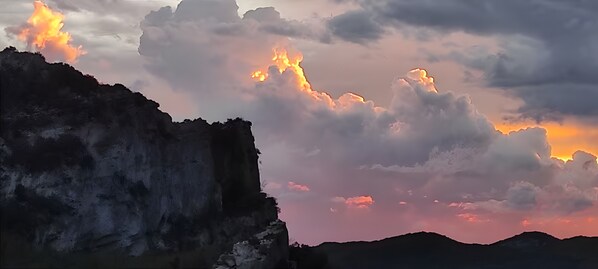 En el exterior podéis relajaros en el balcón privado, la terraza descubierta o en el espacio exterior de la planta baja, disfrutando de la hermosa vista a las colinas y el paisaje circundante.