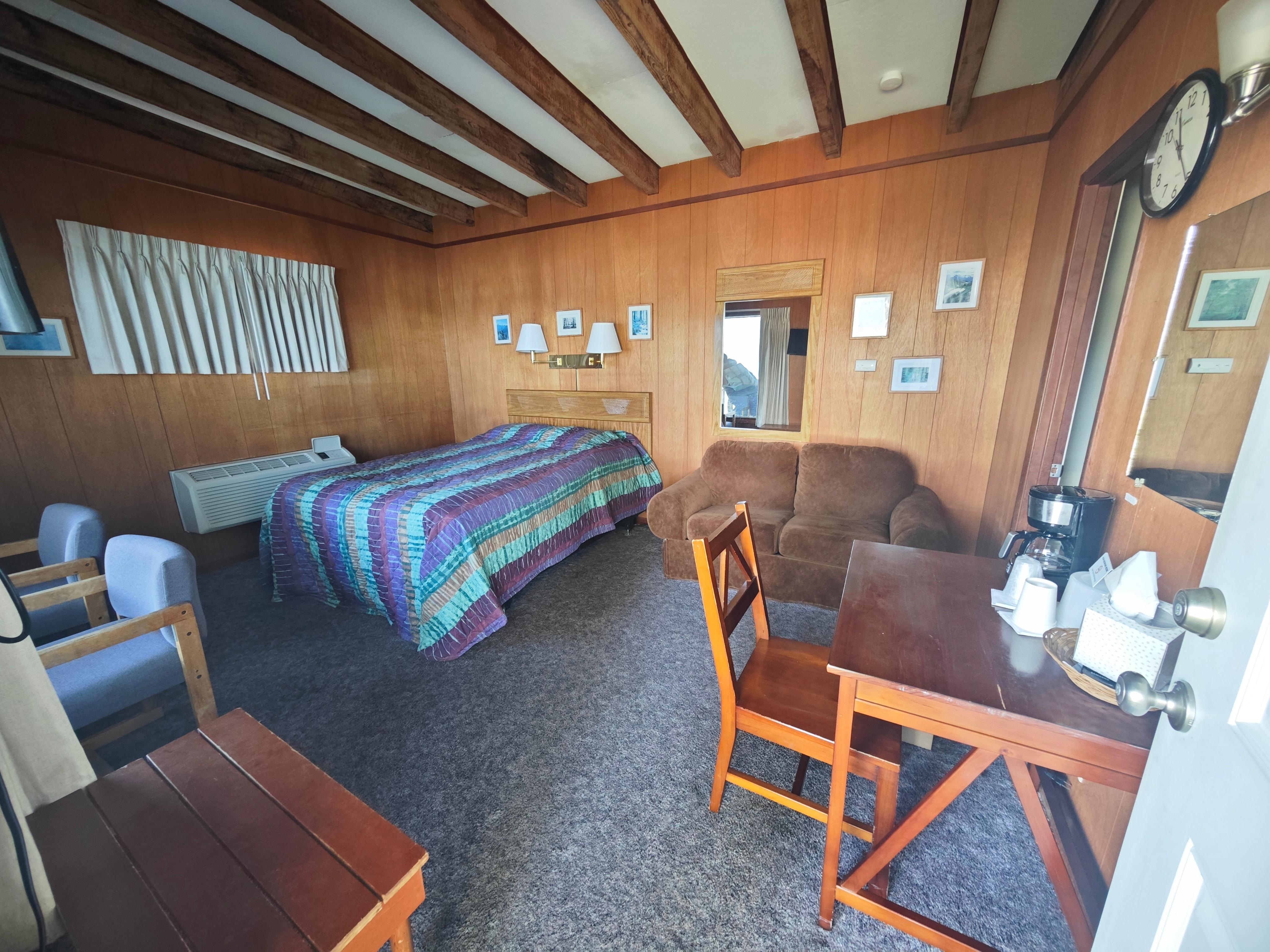 very clean room includes a fridge and many outlets mirror in bathroom was cracked but overall good stay (parking was amazing)