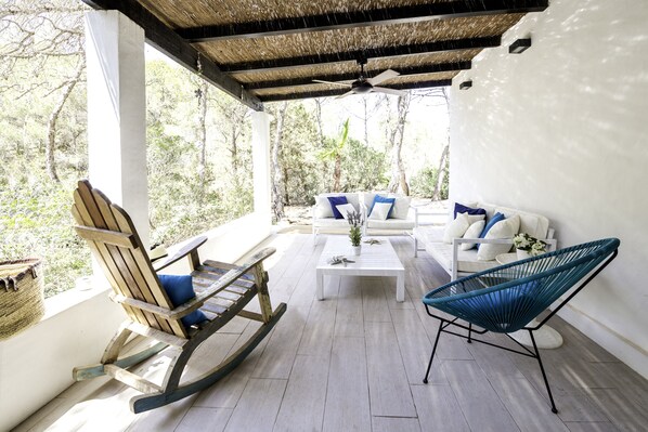 Preciosa casa reformada recientemente con altos standares de calidad.Ha sido nuevamente actulizada .Se encunetra a 130m de la playa,en la mejor zona de playa Mitjorn donde el agua es turquesa, la arena fina, menos densidad de gente y la puesta de sol inolvidable y ,al lado del mitico Pirata Bus (hoy km11)