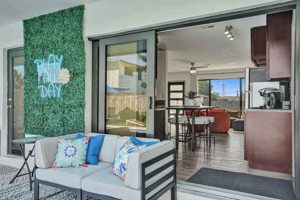 Bright, open, and full of personality, perfect for gathering after a day at the beach or around the pool!