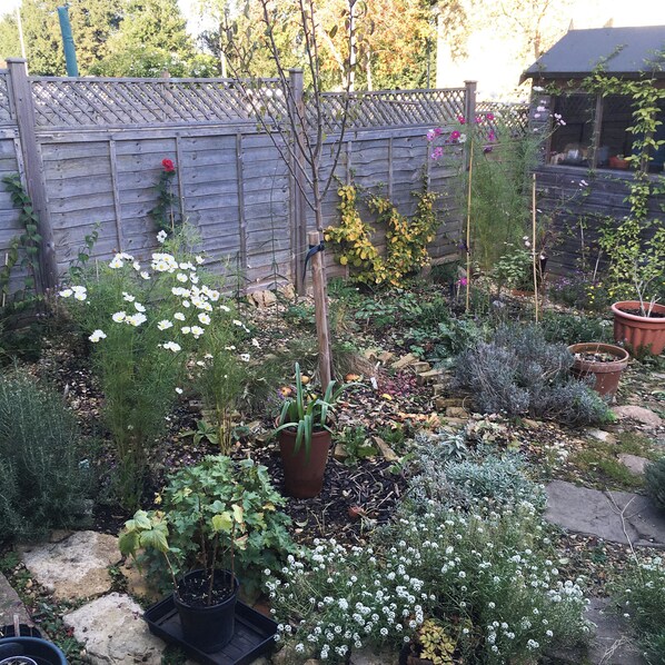 Situated in the Trinity conservation area of Frome, this is a beautiful stone built cottage with stylish furnishings and a minimal feel. Internally the property is decorated with works of art by the owner and her friends. There is a pretty bureau in a nook of the living area for work or writing if needed. The living room also has a sofa which can convert into a sofabed for extra guests. The kitchen is spacious and is fully equipped with plenty of pots and pans and gadgets for the keen cook and baker. Upstairs the bedroom is large and bright with orange velvet curtains and a lovely double bed. Plants fill the property and the little garden at the back of the house is a constantly changing palette of colourful plants including roses, clematis, honeysuckle and mock orange bushes. There is free parking on the street usually outside the house.