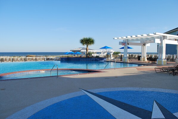 Pointe West es una exclusiva comunidad turística en el extremo occidental de la isla de Galveston. Las playas están limpias, preparadas regularmente y cerradas al tráfico vehicular. La casa club principal tiene una hermosa piscina de borde infinito, bañera de hidromasaje, piscina para niños, cabañas, parrillas, tienda de regalos, gimnasio con armarios y una sala de juegos. El Sunset Pool en el lado de la bahía tiene un pequeño río perezoso, una bañera de hidromasaje, un pozo de fuego, y parrillas de gas y carbón para el uso de los huéspedes durante su estancia. Disfrute del bar de la piscina y el restaurante, Smore's by Sunset Pool, manualidades infantiles, películas de buceo y entretenimiento en vivo. (Le enviaremos el programa de actividades al momento de reservar sus vacaciones o puede consultar el sitio web de Pointe West Beach Club para conocer los horarios / fechas).