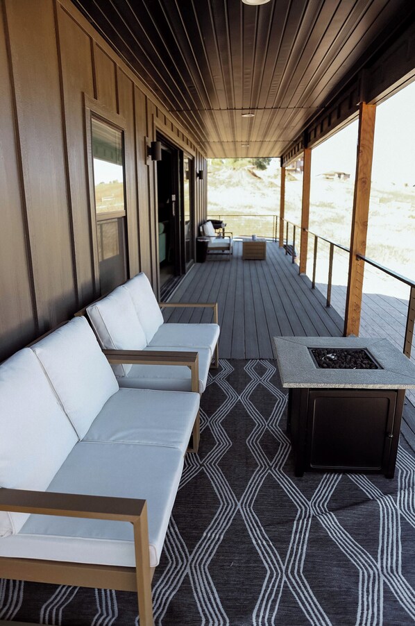 During the colder months, cozy up to the fireplace or enjoy the the outdoor fire pit on the large deck while taking in the views. A smart TV, large sectional that includes a queen bed sleeping, and black out curtains allows additional sleeping areas.