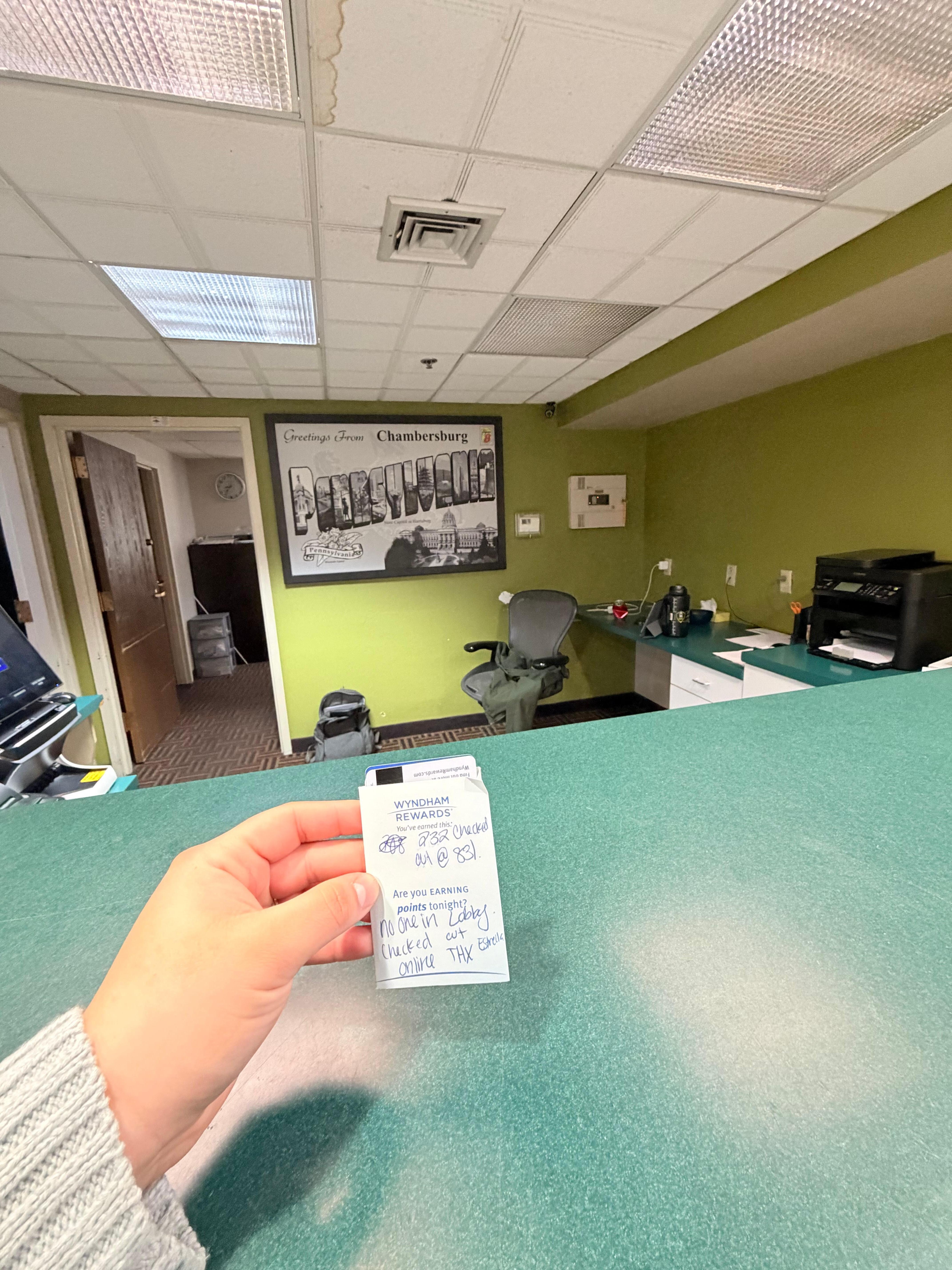 The room smelled like smoke and when we were checking out the person that was suppose to be in the kiddy was in her car. We left the keys there and did check out online.