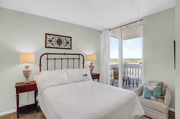 Loved the location and the spacious living areas. Areas that could be improved: carpets need to be cleaned, the shower door in master bathroom was filthy (I cleaned off lots of black gunk from the bottom). I washed the tile floors and needed to change the water several times after I arrived. The wind whistled through the door into the unit. Sofa needs a good cleaning. We loved being on the beach watching the dolphins. The sunrises and sunsets were amazing! The kitchen was well stocked. Beds were comfortable and the sheets were soft. The extra blankets were appreciated.