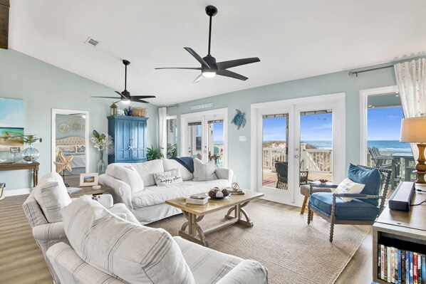 Todas las habitaciones de esta casa son amplias, con capacidad para hasta 11. El dormitorio principal tiene una cama king size con una cama gemela y trundle en la sala de estar. El maestro también tiene un baño privado con jacuzzi y ducha. El primer dormitorio de invitados tiene una cama king con una cama doble y una litera completa. También tiene vista frontal del Golfo con acceso a la cubierta. El segundo dormitorio de invitados tiene una cama de matrimonio con TV. Hay un montón de espacio para relajarse y disfrutar del Golfo a través de cada ventana de la cocina, sala de estar y dormitorios. El frente proyectado en el porche incluye la vista rústica de nuestras dunas naturales y la bahía. ¡Es como estar en otro mundo! La cubierta trasera también tiene un montón de espacio para sentar y ver la puesta de sol después de una cena romántica.