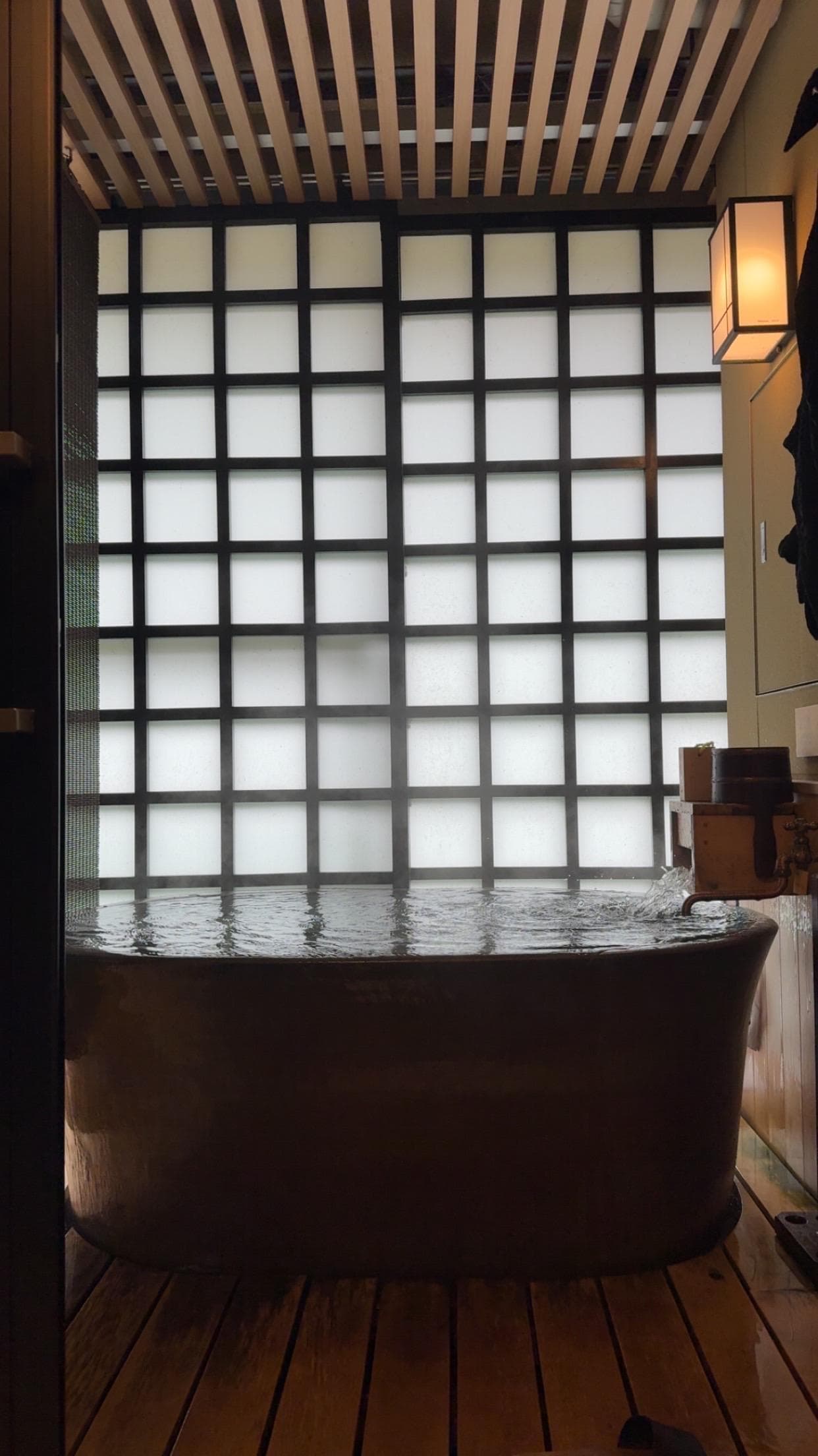 Baño interior de aguas minerales estilo onsen