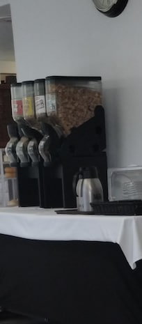As for breakfast? They offer a sad selection of bread, cereal, and pre-packaged cups of fruit that resemble toddler servings from Sam’s Club—definitely not fresh!