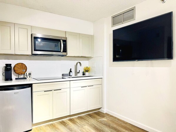 Welcome to our charming one-bedroom suite in a popular hotel condo in the heart of downtown Honolulu! Experience comfort and convenience with 24-hour security and complimentary parking. Walk to Walmart, Ross, 7-Eleven, and trendy restaurants. Stay connected with free WiFi and cable, and relax in the large pool, jacuzzi, and 24-hour fitness center. Sleeps 3 with a King-size bed and Full-size Fulton. Seamless self-check-in process using a combination code.