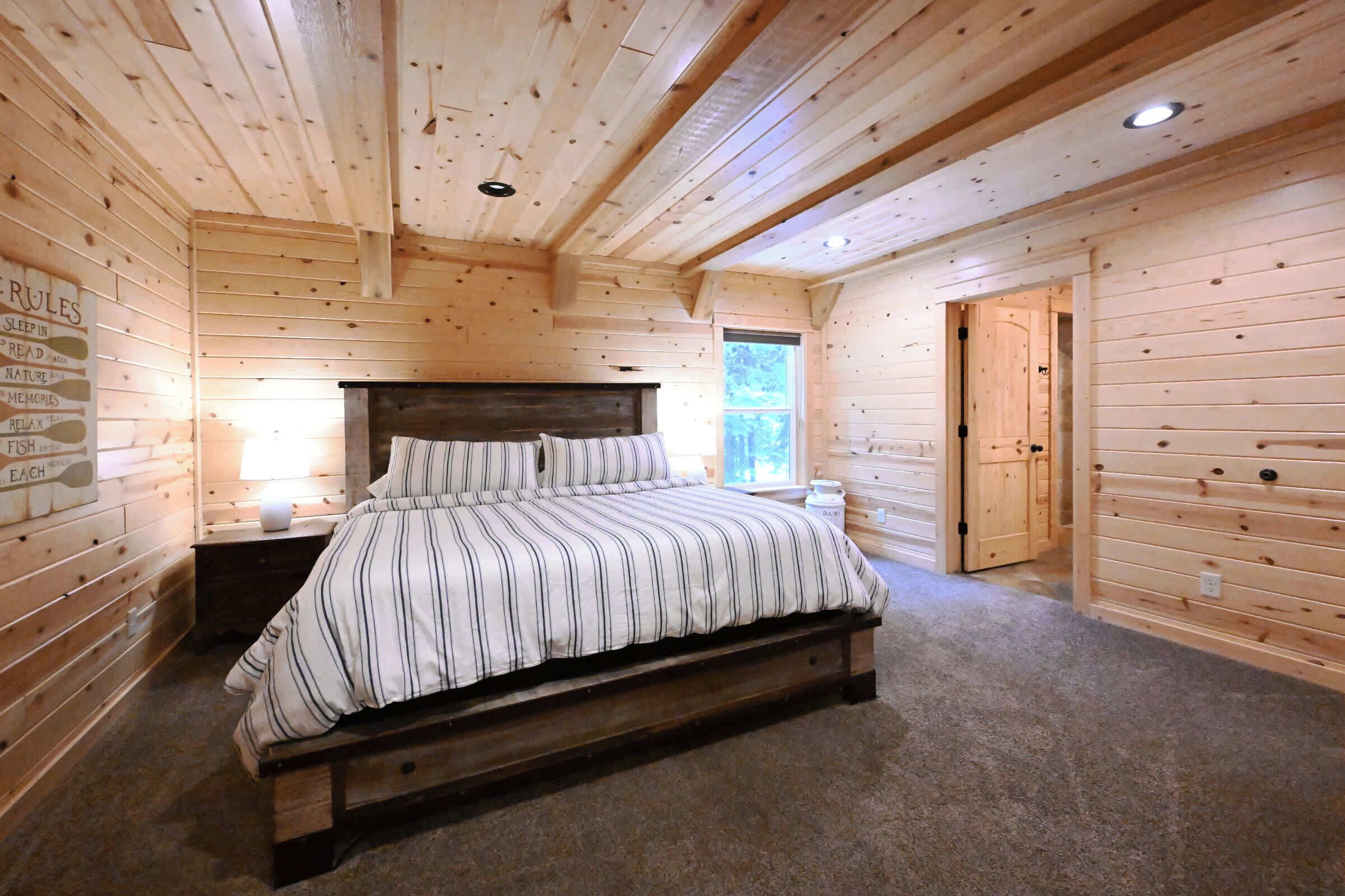 Dentro de sus paredes construidas con troncos, White Moose Cabin tiene tres habitaciones privadas y un loft que alberga dos camas queen. El lujoso dormitorio principal tiene una chimenea propia y acceso privado a las cabañas con bañera de hidromasaje. La espaciosa cocina completamente equipada proporciona el escenario perfecto para organizar una deliciosa comida en el hogar, adecuada para toda la tripulación. ¿Planeando una barbacoa? ¡No hay problema! Use las parrillas para barbacoa de las cabañas o las llamas de un fuego abierto en la hoguera. A lo largo de las cuatro estaciones, White Moose Cabin ofrece la opción de reunirse alrededor del fuego iluminado por gas estacionado en el porche delantero. Incluso en el frío, mantenga su vehículo o motos de nieve calientes en el espacioso garaje climatizado para dos autos. Después de una larga aventura al aire libre, acurrúcate en los sofás de la sala de estar o acomódate junto a la hermosa chimenea para disfrutar de una película nocturna o una simple conversación. Disfrute de un baño de curación en la bañera de hidromasaje bien mantenida, donde aunque el vapor, una gloriosa vista boscosa espera. Los niños pueden disfrutar de un cuento antes de dormir en la propia biblioteca de loft de las cabañas, creada especialmente para que la utilicen durante su estadía. ¡Seleccionar una cabaña para escapar de tu montaña es una gran tarea! Digamos que no te arrepentirás de tu estadía en White Moose Cabin. ¡El bosque espera!